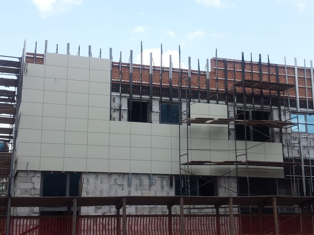Фиброцементный материал пользуется успехом при обустройстве фасадов новостроек и реконструкции старых строений. Продукция не менее актуальна в отделке каркасных домов и быстровозводимых сооружений. Фиброцементные плиты активно применяются при возведении вентилируемых фасадов.