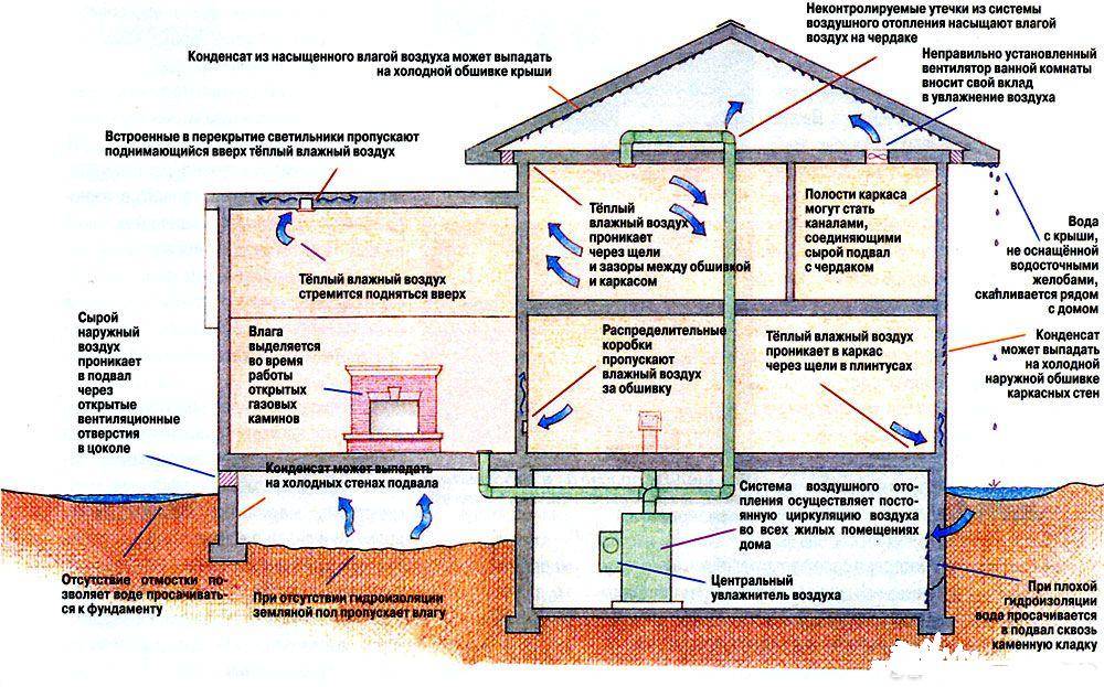 Схема возникновения грибка на стенах и потолке