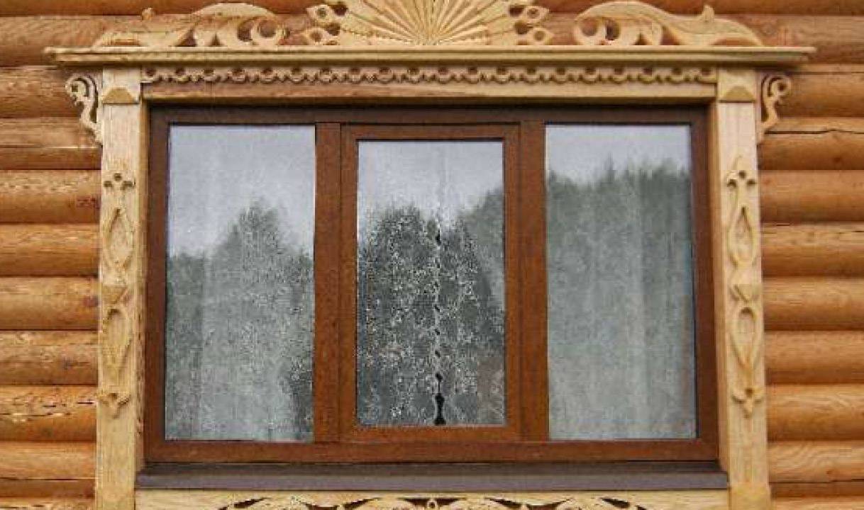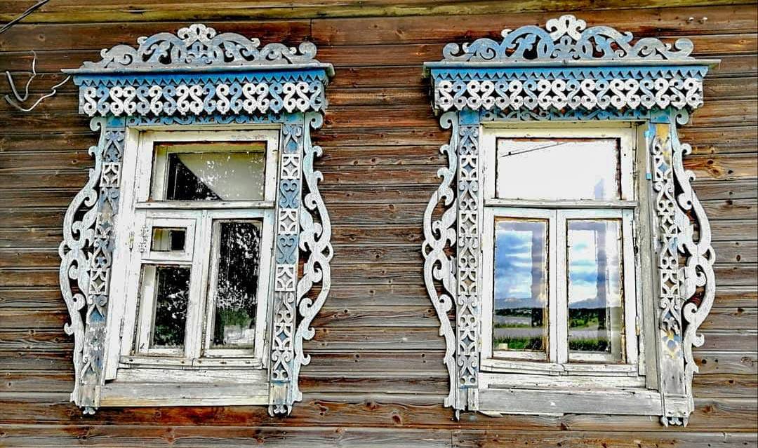 Резные наличники на окнах деревенского дома