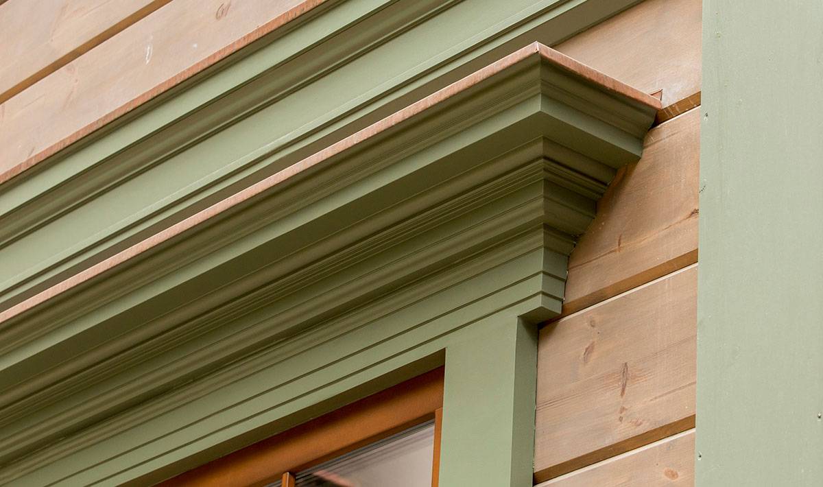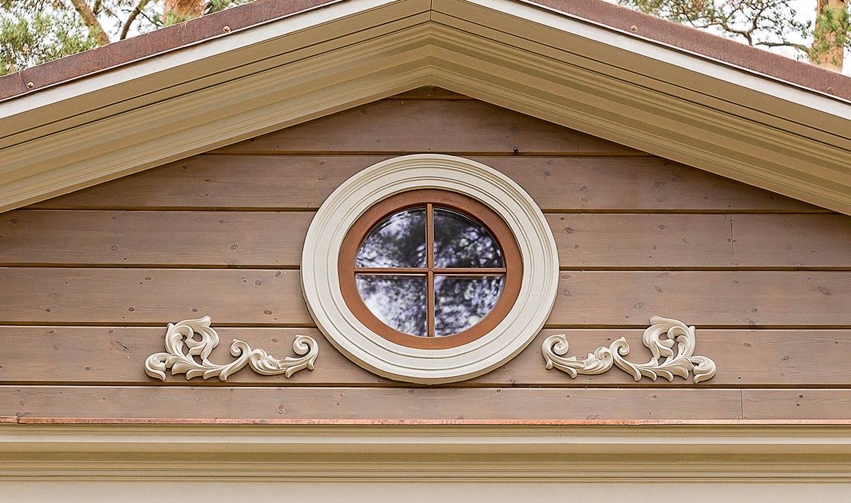 - Фронтоны и филенки. Украшают крышу и стены под оконными проемами;