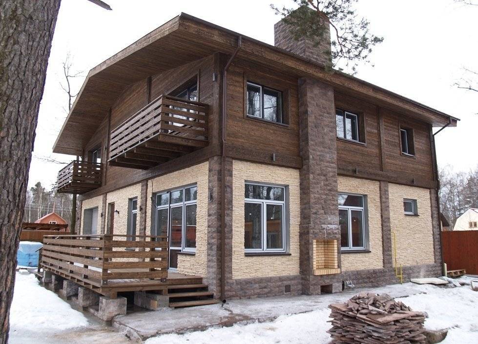 - Современные варианты фасадной отделки разнообразны по материалу изготовления. Пластиковые разновидности легко монтируются собственными силами, каменное оформление потребует привлечения специалистов.