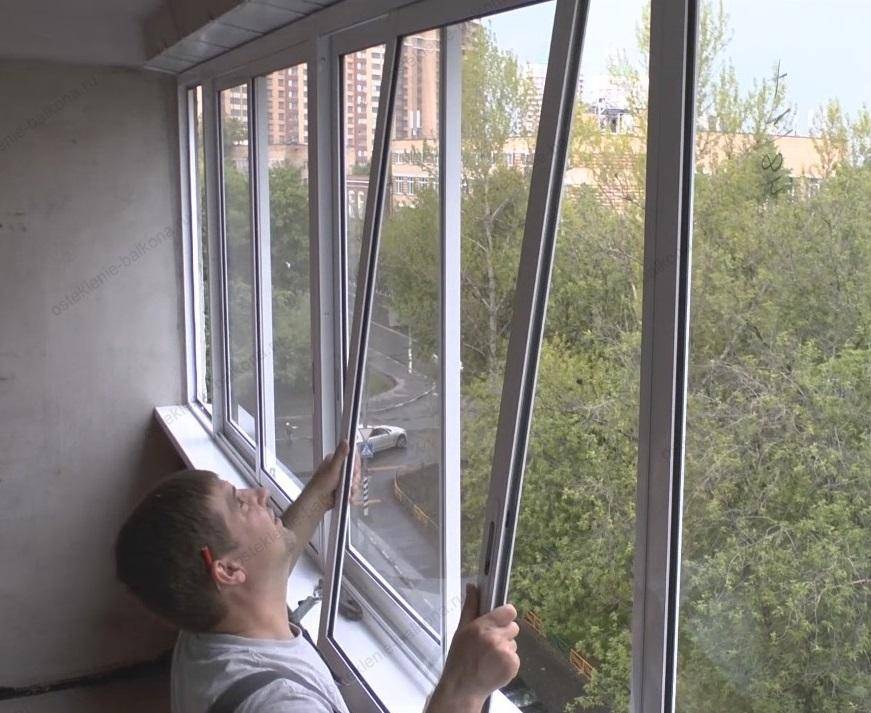 - После установки балконных рам из алюминия на специальные крепежи установить неподвижные и подвижные створки.