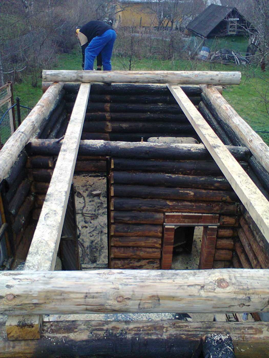 Следует обратить особое внимание на то, что между бревнами обязательно необходимо прокладывать межвенцевой утеплитель, который защитит постройку от дождя, снега и холода. После того, как возвели стены, сразу же можно зашить пол и потолок, а так же перекрыть крышу, установить окна и двери