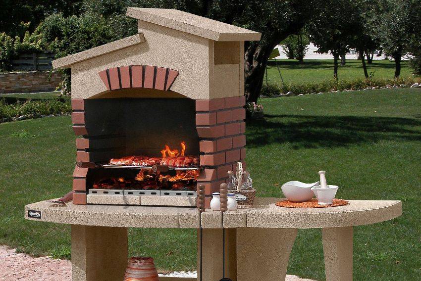 Подобное устройство от своего простейшего переносного аналога отличается гораздо большими возможностями. Крытая конструкция защищена от проникновения пыли во время приготовления шашлыка, а труба для отвода дыма не заставит повара искать средство спасения от удушливого газа.