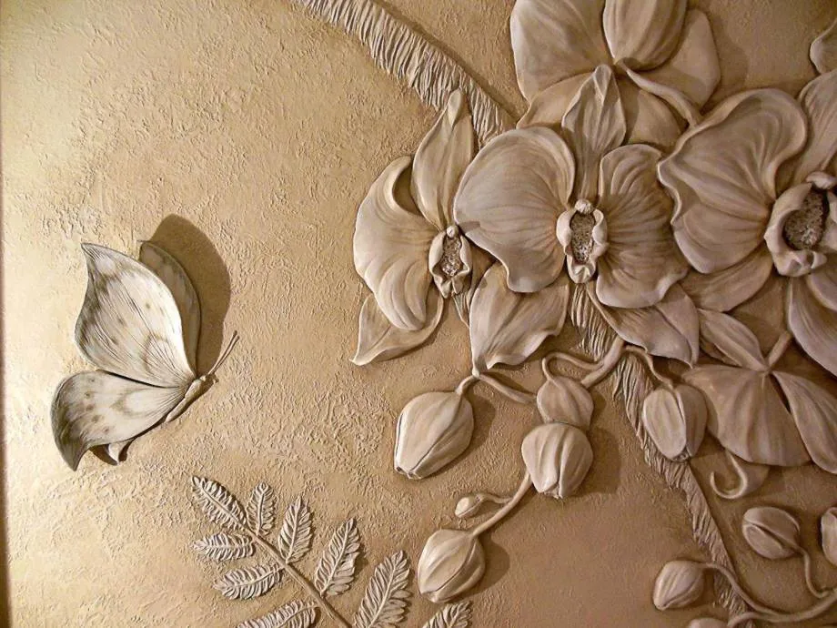 Барельеф можно делать главной композицией, или выполнить его как орнамент, который изображает отдельные разбросанные фрагменты или вьющиеся цветы, лозу винограда. Его используют для украшения комнат, фасада дома и других строений.