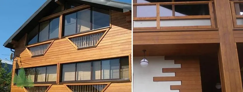 - Для производства этого вида сайдинга производители используют наряду с лиственными и хвойные породы дерева. Особой популярностью пользуются панели, выполненные из древесины кедра, ели, сосны, дуба и липы.