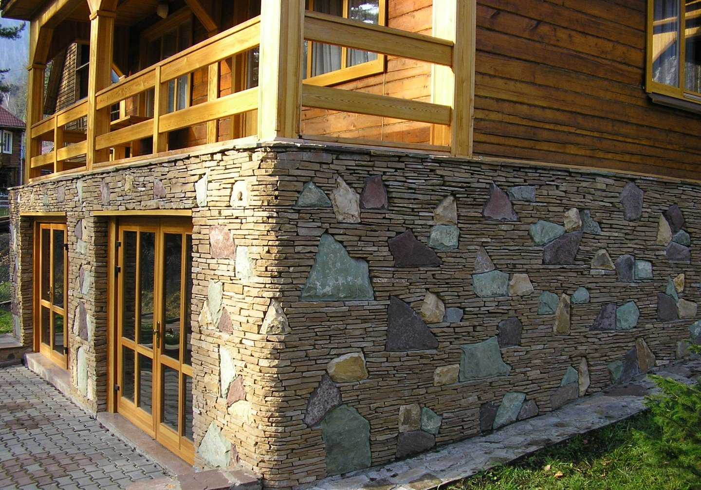 Обшивка деревянного дома каменной кладкой