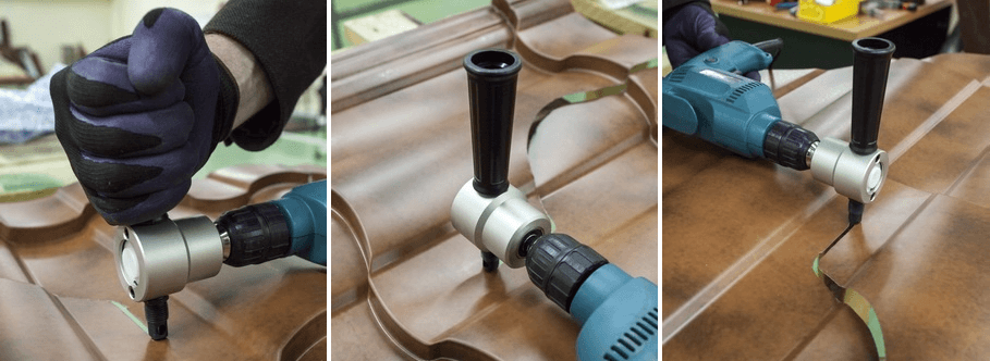 Ножницы по металлу позволяют делать точный надрез в любом месте при любых условиях (но при плюсовых температурах) без привязки к электросети. Главное, хорошо и правильно заточить полотна (ножи), начинать резать плиту с ее верхней части, где есть крепление.