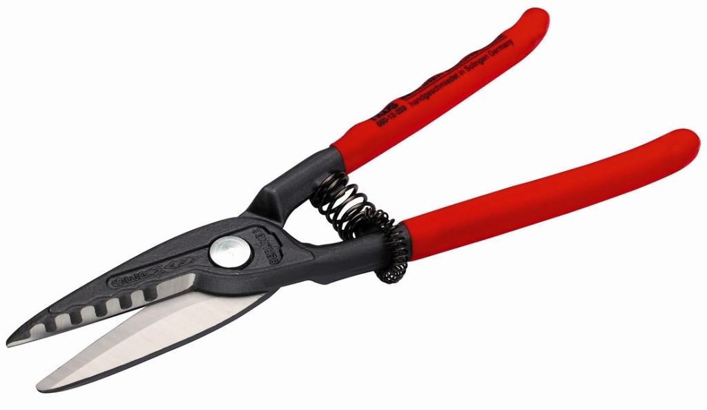 Ножницы по металлу позволяют делать точный надрез в любом месте при любых условиях (но при плюсовых температурах) без привязки к электросети. Главное, хорошо и правильно заточить полотна (ножи), начинать резать плиту с ее верхней части, где есть крепление.