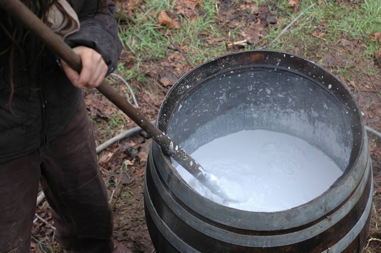Чтобы подготовить известь к дальнейшему использованию, необходимо смешать негашёную известь с водой, в пропорции 1:2. Для этих целей нужно подбирать ёмкость большого объёма: в процессе гашения известь увеличивается минимум двое. Кроме того, процесс сопровождается высокой температурой и выделением известковых паров, поэтому позаботьтесь о респираторе и резиновых перчатках.