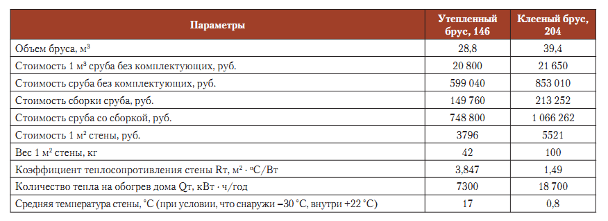 - Дом из бруса. Для достижения приемлемой энергоэффективности толщину стен рассчитывают с учетом климатической зоны. Дом прогревается дольше; после выключения отопления тепло также сохраняет дольше, так как брус способен аккумулировать тепло. В районах с суровыми зимними условиями (Крайний Север, Сибирь) стенам из клееного бруса необходимо дополнительное утепление.