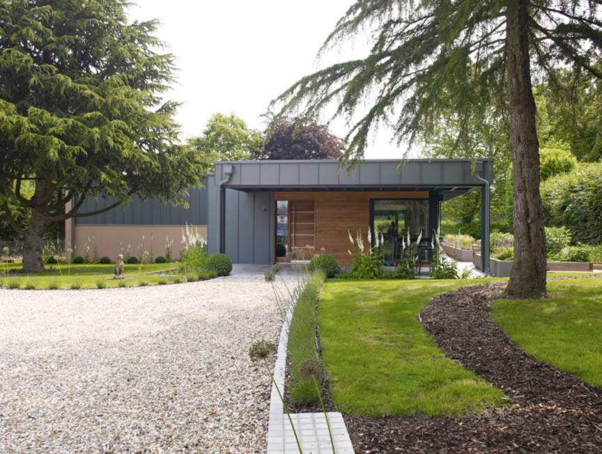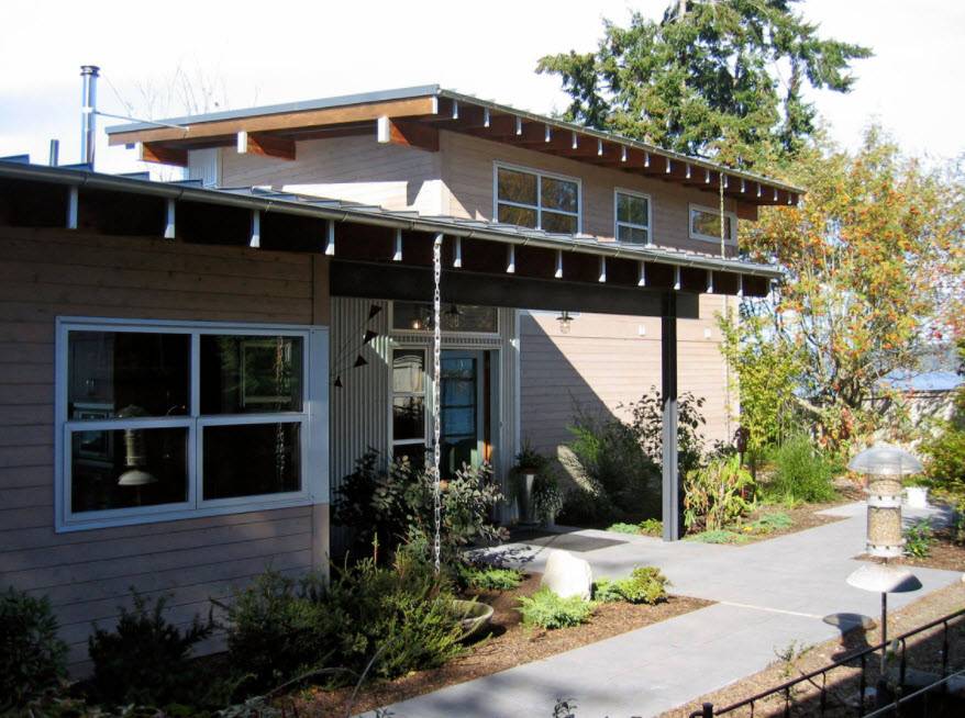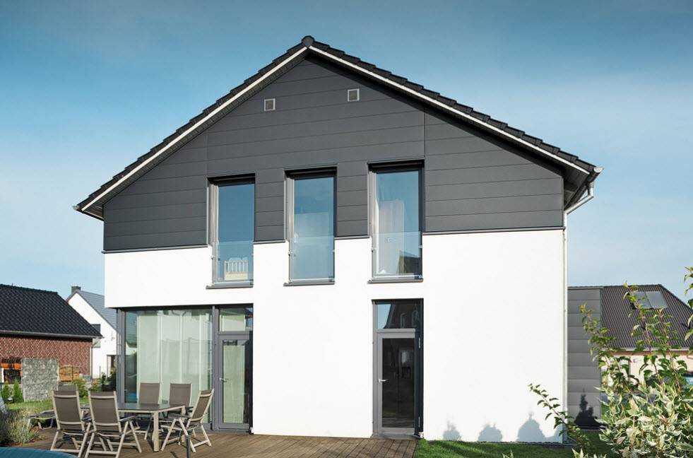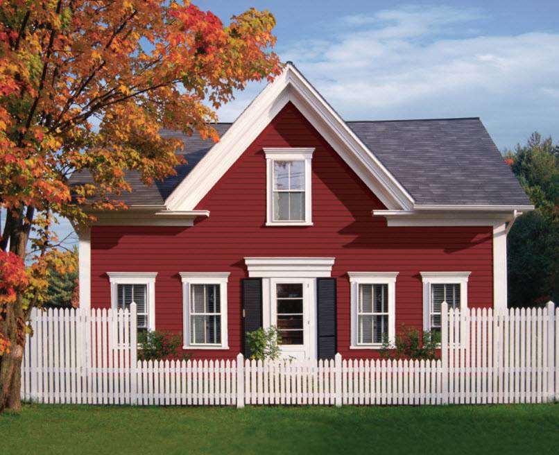| Однотонность | Чаще применяется при сочетании темных оттенков, так как светлая крыша на большей территории нашей страны не практична.При использовании одинаковых или схожих цветов крыши и стен строение обретает тяжеловесность и монументальность. |