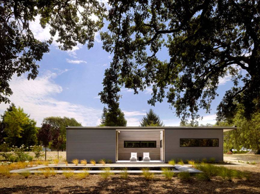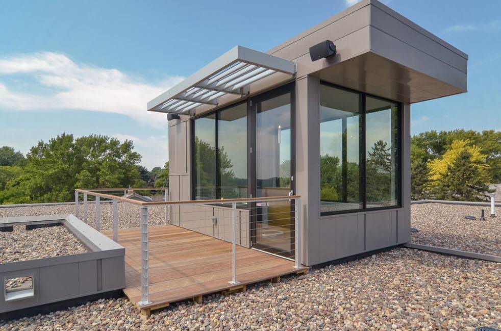 | Светлые стены и темная кровля | За счет светлых стен, сооружение визуально увеличивается и хорошо заметно в темное время суток: