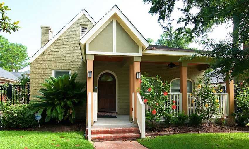 - Если крыша, окна и двери дома коричневые, то фасад лучше сделать желтым.
