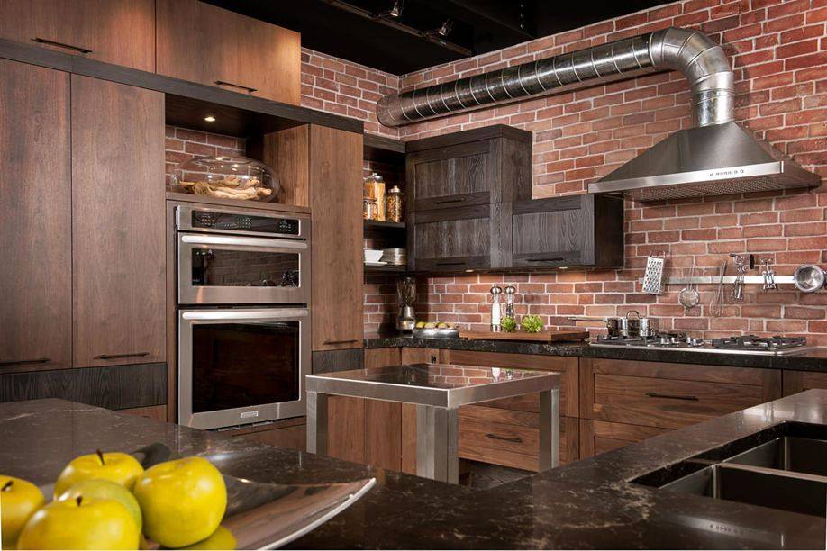 В старых домах с высокими потолками можно без сомнений выбрать лофт, который никогда не утратит ни актуальности, ни креативности. В интерьер кухни 2022 отлично впишутся кирпич и бетон (или их имитация). Хорошо будут смотреться мебель и бытовая техника с металлическими элементами. Отлично впишутся дерево, серый, черный или коричневый и даже небольшие цветовые акценты красной гаммы.
