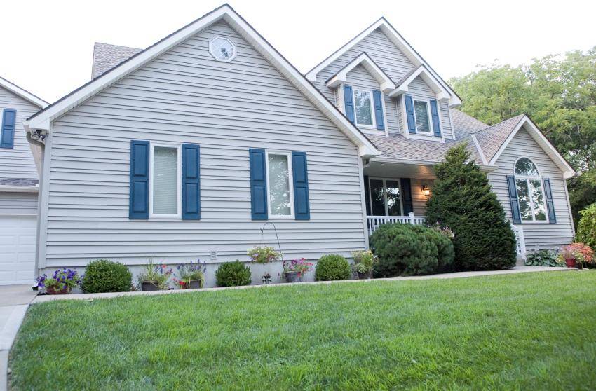 Дом обшит виниловым сайдингом синего цвета