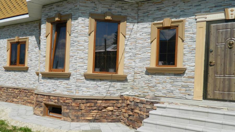 Нередко при создании фасадов мастера сочетают различные виды декорирования с применением нескольких видов материалов.