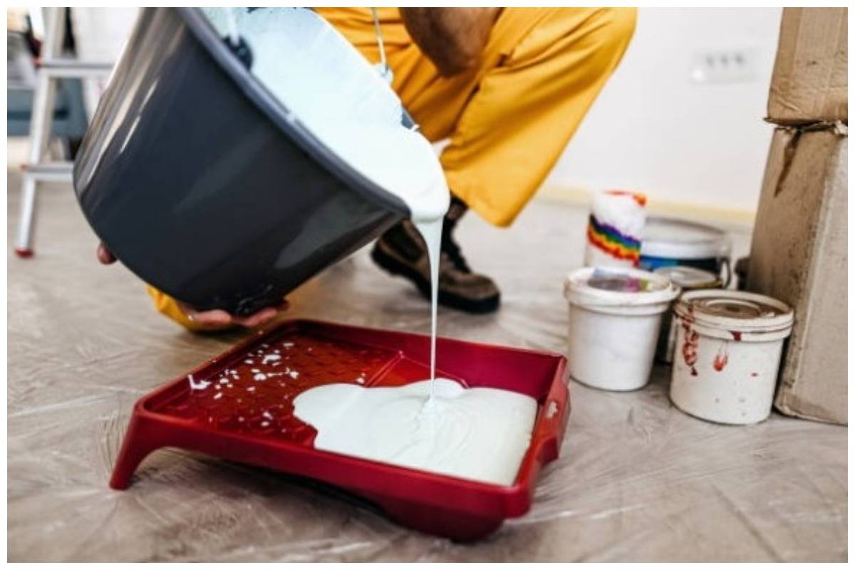 Красить стену можно в два слоя, тогда первый разбавляется водой в соотношении 1:10, второй уже не разводится, в этом случае грунтовка не используется. Шпатель применяется как барьер для закрытия границы окраски перед потолком, кисть – для улучшения эффекта цвета, растирая четкие видимые границы перехода.