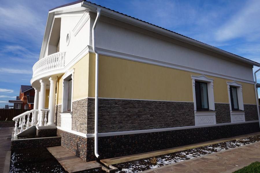 Главный критерий для принятия решения покупать готовые фасадные изделия или давать задание фасадчикам — выполняющим утепление вашего дома это геометрическая форма элементов которые вы хотите применить на фасаде дома. Вы наверно очень часто видели фасады домов с простыми рамками вокруг окон и с двух или трех ступенчатыми карнизами под свесом кровли. Так же часто встречаются простые прямоугольные рустовые камни на углах дома. Такого рода декор фасада изготавливается исполнителями фасадных работ вручную при выполнении утепления фасада.
