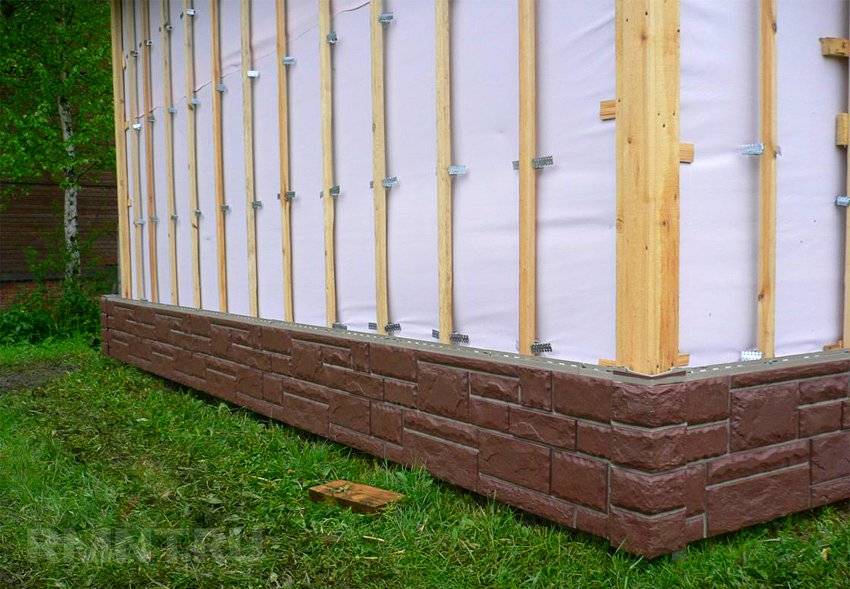 Первая планка обрешетки крепится вдоль вертикально натянутой лески, все последующие выравниваются по горизонтали и по вертикали. Рейки монтируются по всей поверхности стены, включая промежутки между окнами, дверные коробки и карнизы. Обычный шаг для обрешетки составляет около 60 см (в областях с сильными ветрами — не более 30 см).