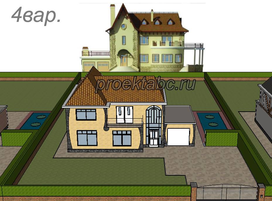 Третий шаг – представление фасада дома в графическом виде. Хотелось бы, чтобы вы все же сделали это в 3D, поскольку эти модели легко подаются редактированию. К примеру, я создал одну и сделал 4 копии. После чего я могу придавать им понравившееся мне оформление. Интересные варианты оформления фасада дома вы можете найти в моей галерее. Я выбрал 5 подходящих фото и постарался отобразить их основные черты на понравившемся доме.