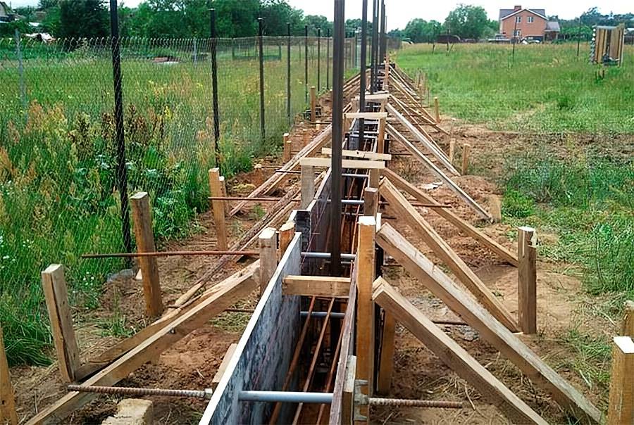 Если деревянные секции будут комбинироваться с кирпичными, каменными столбами и цоколем, то лучше остановиться на ленточном основании.