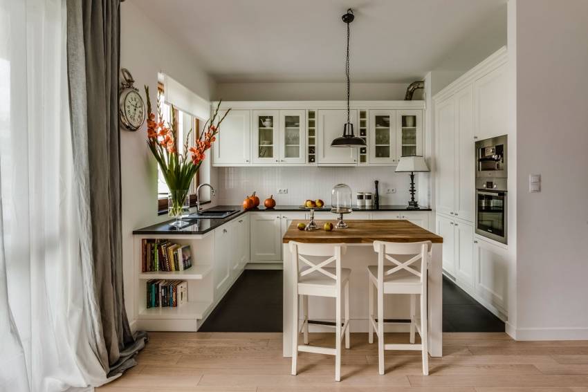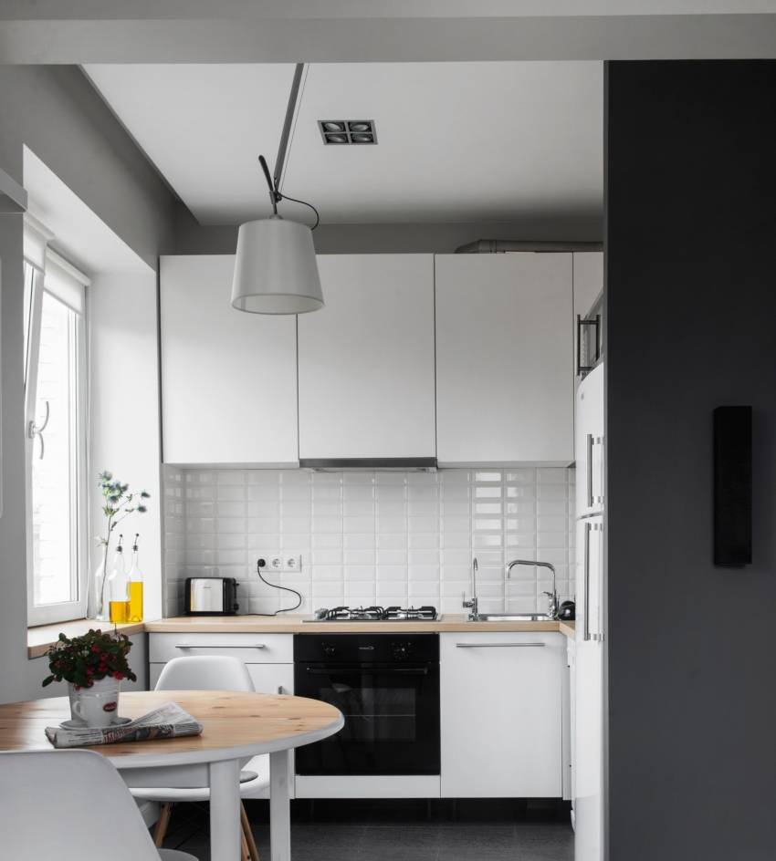 Белый цвет – отличный выбор для маленькой кухни