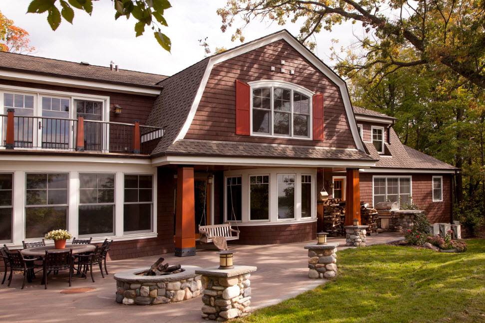 - декор стен, выполненный камнем, фахверком, сайдингом;