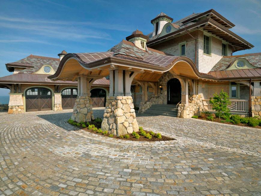 Раньше крыша из природных материалов говорила об упадочном финансовом положении хозяев, а сейчас такая кровля очень ценится и считается экологически чистой. Яркими особенностями крыш в английском стиле, являются острота и высота.