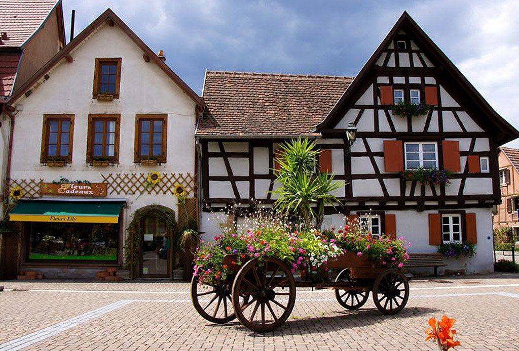 Фахверковые дома. Фахверк – прославленный стиль зодчества Германии. Отличительной особенностью данных построек считается создание вертикального каркаса с поперечными балками и раскосами по диагонали. Для него также типичны фигурные балочные конструкции. Для придания зданию большей выразительности, балки окрашивают в контрастные с расцветкой стен тона. Особенно эстетично на стенах смотрятся изогнутые балки в сочетании с облицовкой из натурального камня либо штукатуркой.