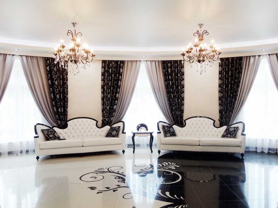 При создании интерьера и экстерьера дома в современном стиле обязательно вносят роскошные детали, которые могут быть частью либо основой дизайна. На фото домов в стиле модерн часто можно увидеть необычные балконы и эркеры, арочные дверные и оконные проемы. Необходимое условие интерьера – высокие потолки различной кривизны и формы.