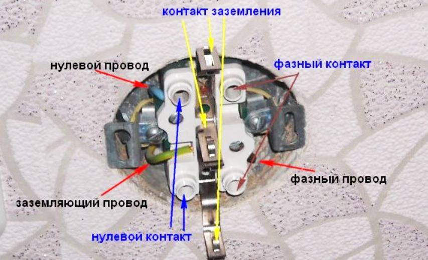 Схема подключения двойной розетки с заземлением