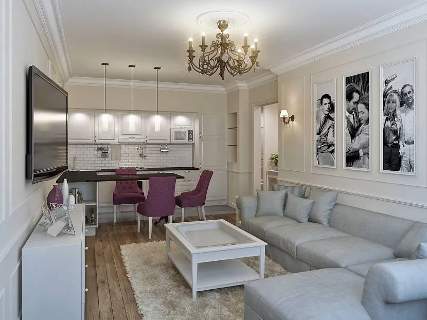 Кухня-студия создается путем снесения всего одной перегородки. Это дает возможность получить больше пространства для приготовления еды, семейного ужина или времяпровождения со своими гостями. Тот, кто готовит пищу, не будет отрезан от остальных. К тому же появиться больше свободного места.