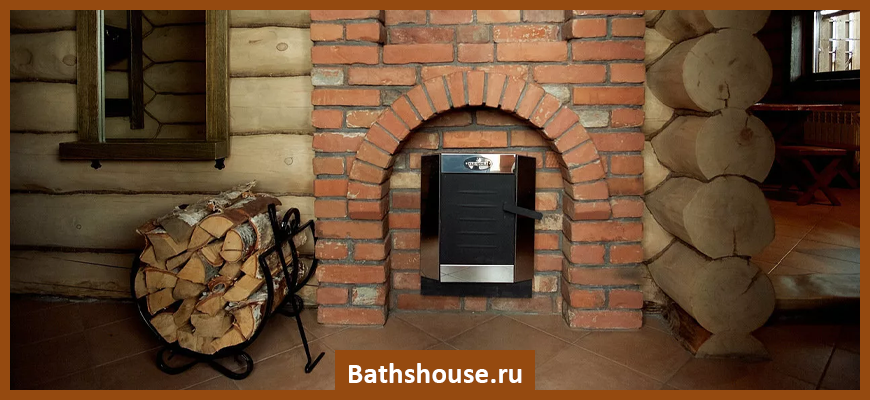 Этот тип печей предполагает возможность использования двух видов топлива, например, газа или дров. Тогда в этой банной печи будет и топливник, и подвод для газовой трубы.