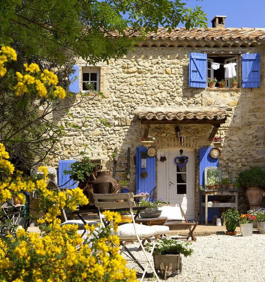 Фасад дома в стиле прованс: обустройство дворика