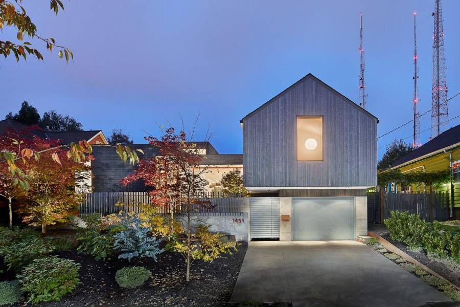 Яркий фасад с подсветкойИсточник elledecoration.ru