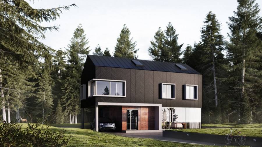 Со временем его оттенок становится темнее, но чтобы избежать этого, можно покрыть поверхность защитным лаком. Если вы против использования природного камня, можете облицевать дом искусственной плиткой, повторяющей текстуру натурального материала: