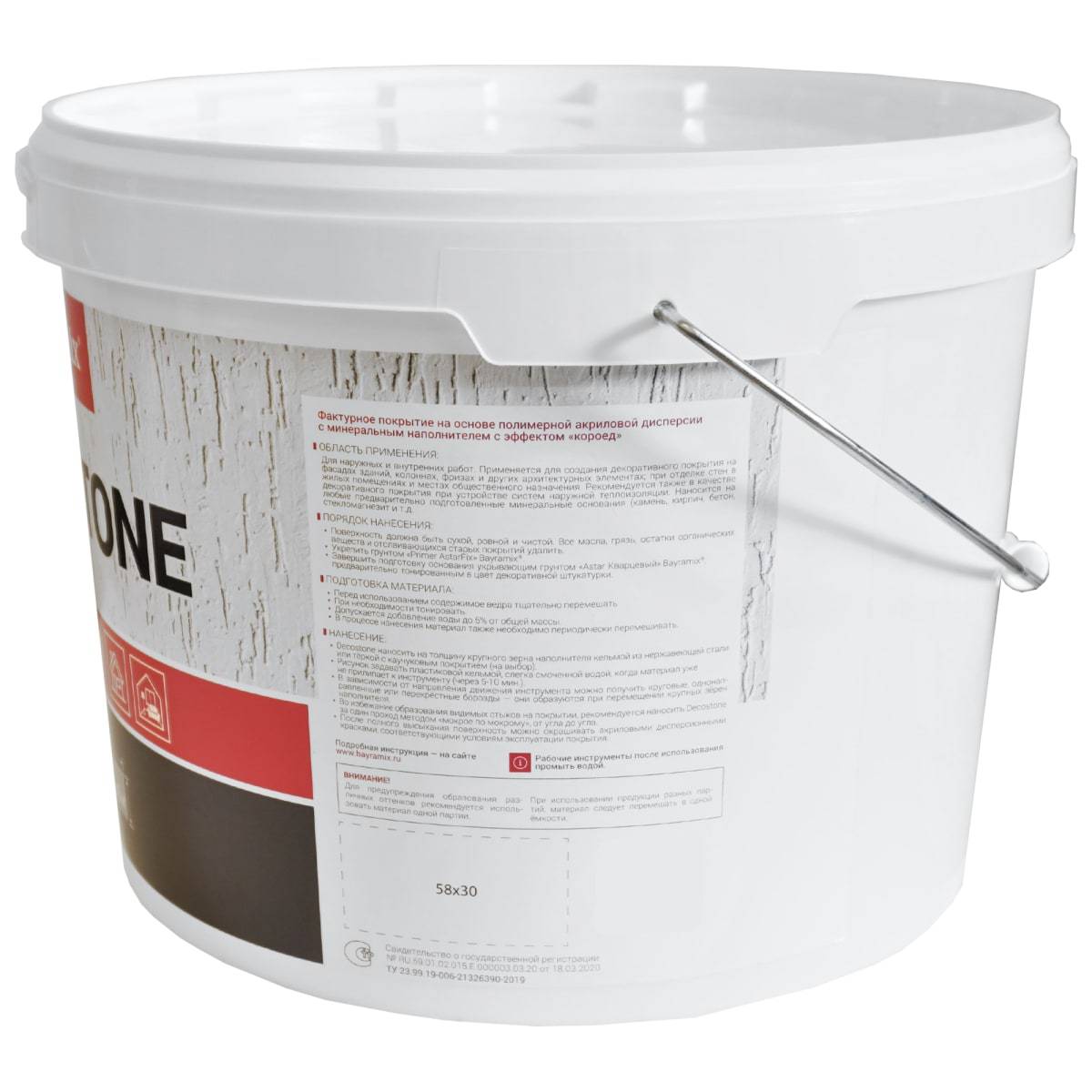 Обращаем внимание, что заказ колерованного покрытия доступен только по 100% предоплате. Фактурное покрытие Bayramix Decostone – текстурное покрытие на основе акриловых сополимеров с крупным минеральным наполнителем с эффектом «короед»