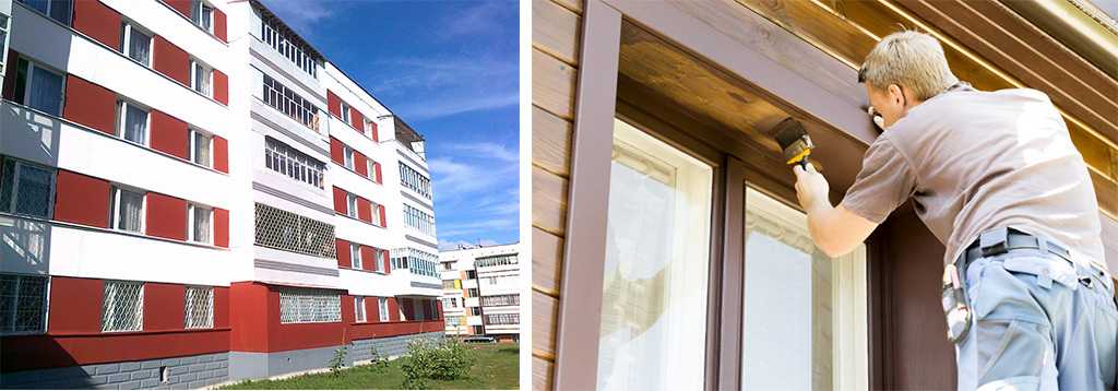 Акриловая краска используется как для защиты фасадов из бетона в многоквартирных домах, так и для обработки фасадов малоэтажных построек из дерева.