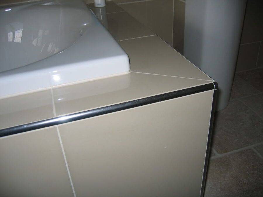 Подрезать плитку, если это необходимо, нужно исключительно специальным диском по камню. Прежде всего намечается линия обреза, а только после этого лишнее отсекается при помощи болгарки. После того как процесс завершен, подождите несколько дней для застывания клея. После этого уже можно заполнять швы с помощью строительного пистолета.