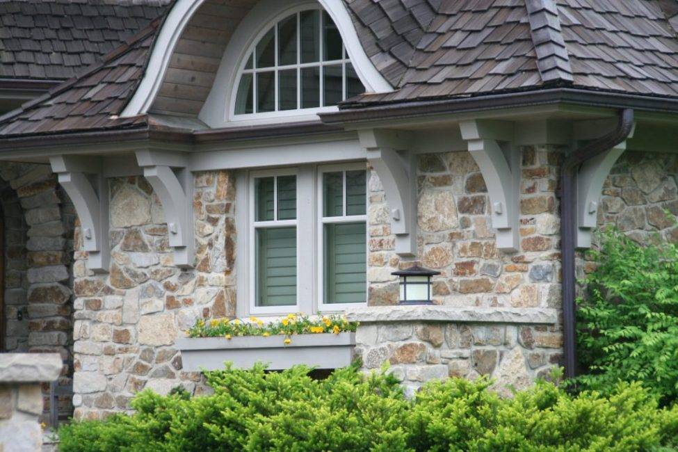 Камень. Натуральный и искусственный материал, используемый для отделки, выглядит дорого и презентабельно. Служит он очень долго, но требует профессионального подхода и значительных капиталовложений. Среди строителей более популярным является искусственный камень, который выглядит не хуже натурального, зато весит намного меньше и с ним легче работать.