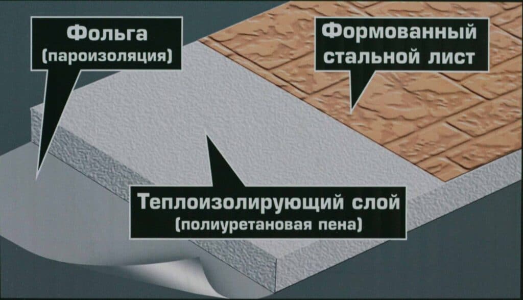- Материал, с комбинированным типои структуры. К полимерному слою таких панелей присоединяют утеплитель. Это делает их толще. Благодаря утеплителю этой строительный материал выполняет функцию изоляции тепла для стен.