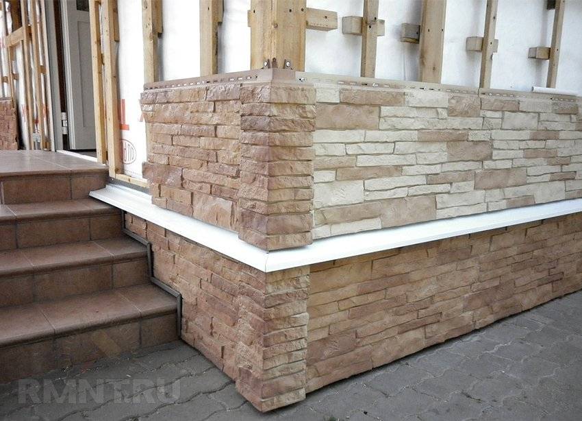 - Под профилем, по цоколю устанавливаются готовые элементы фасадной отделки;