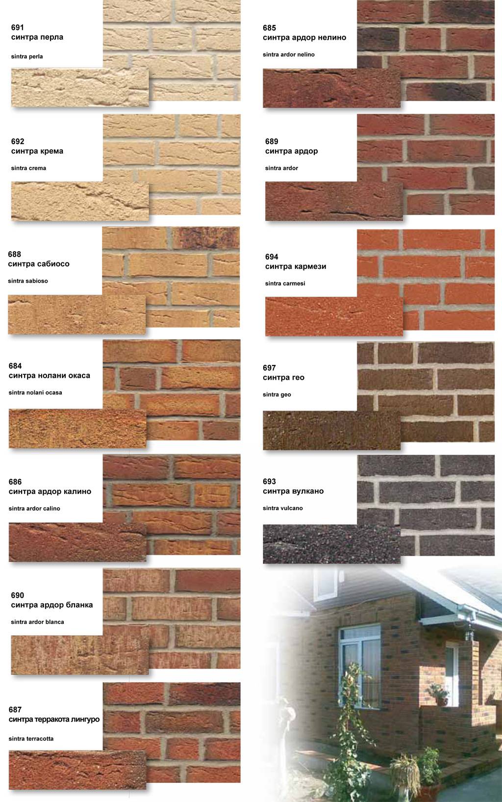 Благодаря уникальной технологии нанесения цвета и рисунка возможно добиться абсолютной идентичности с кирпичом или камнем. Орнамент наносят как вертикально, так и горизонтально.