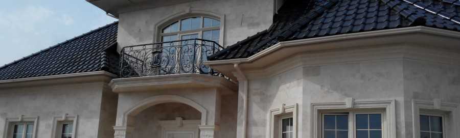 При этом масса полимербетона существенно ниже, чем у природного материала, что дает возможность упростить фиксацию, а также создать оригинальные дизайнерские элементы. Элементы из полимербетона на фасаде отлично сочетаются с перилами и лестницами, отделанными таким же материалом. Такая комбинация поможет превратить обычный дом в настоящий замок.
