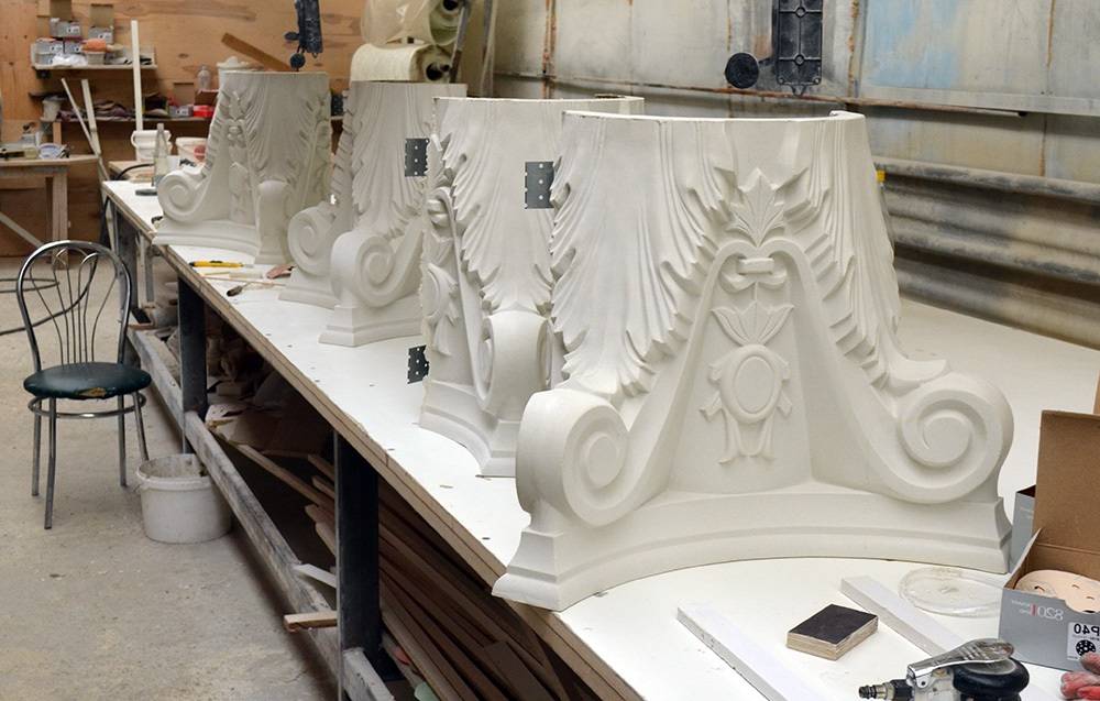 - Создание скульптором гипсовой модели – для элементов со сложной конфигурацией и деталировкой. Для прямолинейных и несложных элементов модель не требуется.