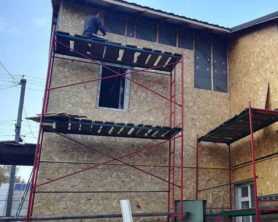 В каркасном строительстве подготовку поверхности фасада к облицовке начинают готовить после проведения утепления. Если фасад будет вентилируемым, а в каркасном доме он должен быть таким, то после утепления необходимо на поверхность монтировать обрешетку.