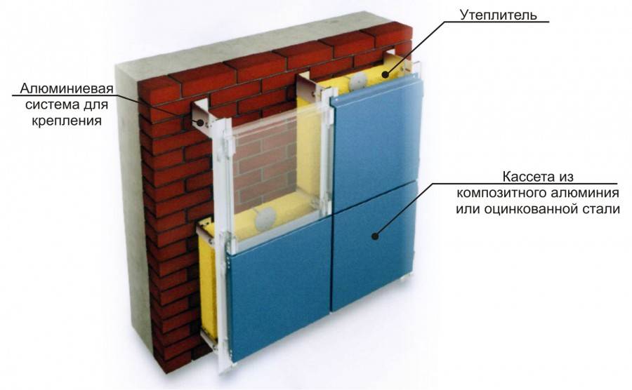 - Отсечка устанавливается на кронштейны с помощью заклепок. Если используется цельнометаллическая отсечка, то она монтируется таким образом, чтобы не препятствовать свободной вентиляции фасада.