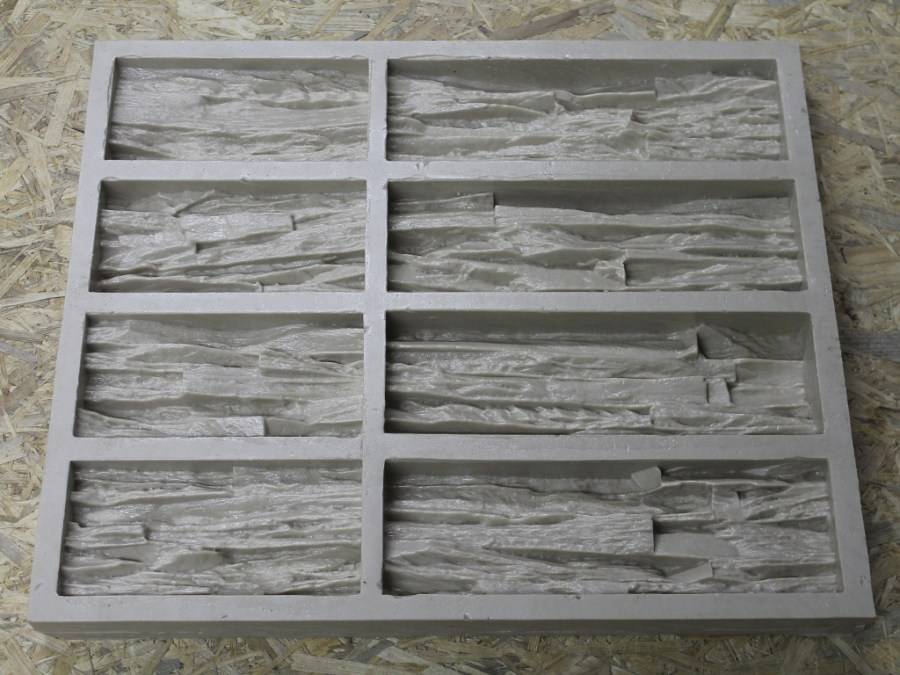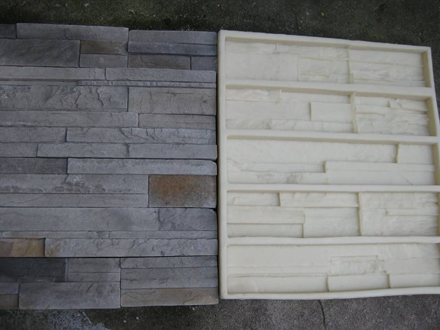 Изготовить матрицу собственноручно можно из полиуретана, силикона, пластика. Очертания формы для заливки и фактура декоративной поверхности полностью зависят от потребностей. Это могут быть, например, гладкие или слегка шероховатые кирпичики, плитки с ярко выраженной неровной поверхностью, имитирующие сланец.