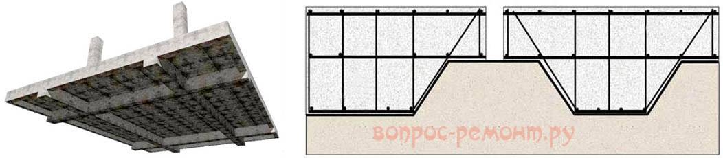 • Обычные ровные плиты и конструкции, усиленные дополнительными ребрами жесткости или сваями.